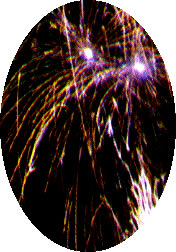 宇宙の銀河系のようなきらびやかな噴水花火です。はじめはオレンジの星がキラキラ噴き出します。後半は、赤色や緑色の星のたちが加わります。高さ約2m、半径約1mの範囲に噴き出します。