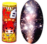 燃焼時間約25秒煙少なめ 錦火を噴き、次に辺りを赤くする程の真っ赤な炎を噴き、次に黄色の炎に変わります。 最後に黄金色の火花を噴出します。