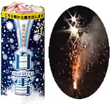 燃焼時間約20秒 白色パチパチ火花が噴き出て、次に高さ約3mの白色火花がシュワッ!と噴出します。