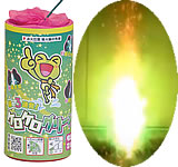 燃焼時間約25秒煙少なめ錦火を噴き、次に辺りを緑色にする程の炎を噴き、次に黄金色の火花を噴出します。 もう一度、緑火、黄金色を噴き、最後に緑火を噴出します。