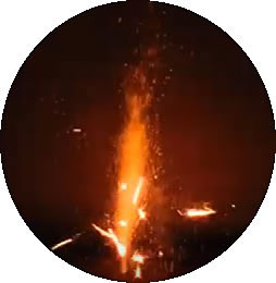 まぶしいパチパチ花火から、野獣のようにド迫力の火柱へ変化して噴き出す噴出花火です。 製造は三州火工さんです。