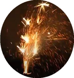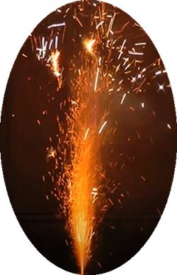 「光」と「音」が奏でる火花をご覧あれ 金色の花がパチパチと咲き続けます。 噴出時間 約15秒間 高さ約3m、半径約2.5mの範囲に噴き出します。