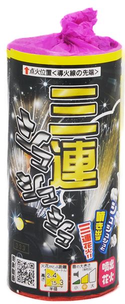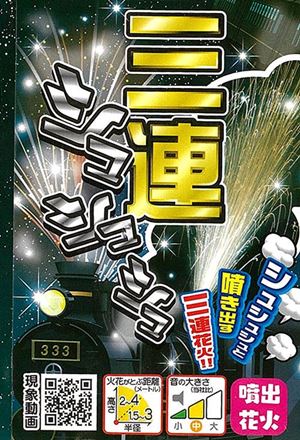 (同時発売の「三連シュシュシュ」より高さが少し低めの花火です)
