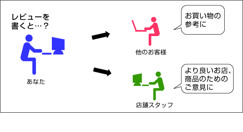 また、レビュー(感想や評価)は、どなたでも、自由に書き込むことができるんです。 ぜひ、お気軽に投稿いただいたらうれしいです! 当店をご利用いただいていない方も大歓迎です♪ 書き方(投稿方法)はとってもカンタン!次のとおりです。 |