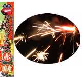 九州福岡産の昔ながらの糸付き銀波です。燃焼時間約80秒。滝の様に銀色の火花が長く流れ落ちます。火花(火の粉)が約3m落下します。